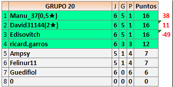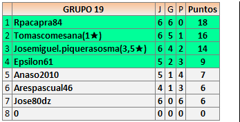 1En está página se irán publicando los resultados de las diferentes partidas, siendo ambos jugadores responsables de subirlos o de comprobar que ya hayan sido publicados insertando un COMENTARIO en la parte inferior de la pantalla (opción “Deja tu comentario”), indicando el nombre de los dos jugadores y los puntos obtenidos en la partida.