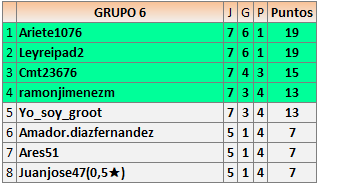 Deja un comentarioEn está página se irán publicando los resultados de las diferentes partidas, siendo ambos jugadores responsables de subirlos o de comprobar que ya hayan sido publicados insertando un COMENTARIO en la parte inferior de la pantalla (opción “Deja tu comentario”), indicando el nombre de los dos jugadores y los puntos obtenidos en la partida.