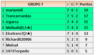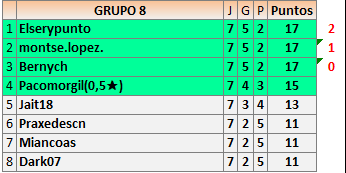 Deja un comentarioEn está página se irán publicando los resultados de las diferentes partidas, siendo ambos jugadores responsables de subirlos o de comprobar que ya hayan sido publicados insertando un COMENTARIO en la parte inferior de la pantalla (opción “Deja tu comentario”), indicando el nombre de los dos jugadores y los puntos obtenidos en la partida.