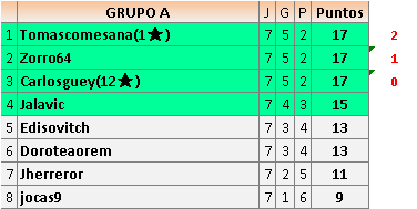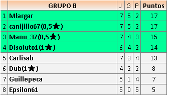 Deja un comentarioEn está página se irán publicando los resultados de las diferentes partidas, siendo ambos jugadores responsables de subirlos o de comprobar que ya hayan sido publicados insertando un COMENTARIO en la parte inferior de la pantalla (opción “Deja tu comentario”), indicando el nombre de los dos jugadores y los puntos obtenidos en la partida.
