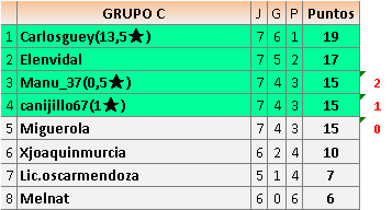 Deja un comentarioEn está página se irán publicando los resultados de las diferentes partidas, siendo ambos jugadores responsables de subirlos o de comprobar que ya hayan sido publicados insertando un COMENTARIO en la parte inferior de la pantalla (opción “Deja tu comentario”), indicando el nombre de los dos jugadores y los puntos obtenidos en la partida.