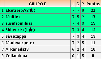 Deja un comentarioEn está página se irán publicando los resultados de las diferentes partidas, siendo ambos jugadores responsables de subirlos o de comprobar que ya hayan sido publicados insertando un COMENTARIO en la parte inferior de la pantalla (opción “Deja tu comentario”), indicando el nombre de los dos jugadores y los puntos obtenidos en la partida.