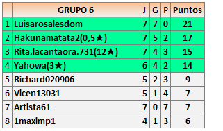 Deja un comentarioEn está página se irán publicando los resultados de las diferentes partidas, siendo ambos jugadores responsables de subirlos o de comprobar que ya hayan sido publicados insertando un COMENTARIO en la parte inferior de la pantalla (opción “Deja tu comentario”), indicando el nombre de los dos jugadores y los puntos obtenidos en la partida.