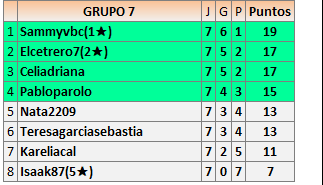 Deja un comentarioEn está página se irán publicando los resultados de las diferentes partidas, siendo ambos jugadores responsables de subirlos o de comprobar que ya hayan sido publicados insertando un COMENTARIO en la parte inferior de la pantalla (opción “Deja tu comentario”), indicando el nombre de los dos jugadores y los puntos obtenidos en la partida.