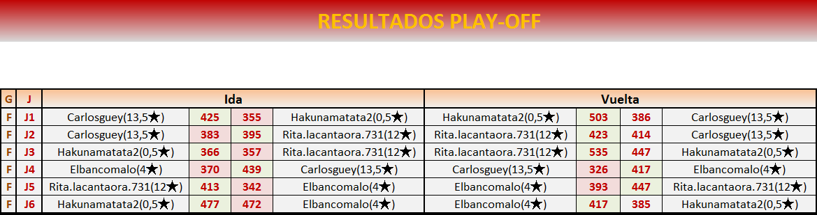 Fin PLAY OFF IDA: 19 de MAYO a las 21:00