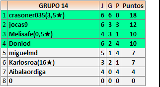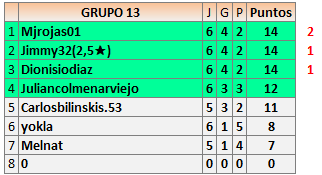Deja un comentarioEn está página se irán publicando los resultados de las diferentes partidas, siendo ambos jugadores responsables de subirlos o de comprobar que ya hayan sido publicados insertando un COMENTARIO en la parte inferior de la pantalla (opción “Deja tu comentario”), indicando el nombre de los dos jugadores y los puntos obtenidos en la partida.