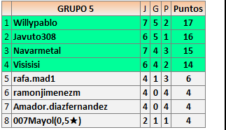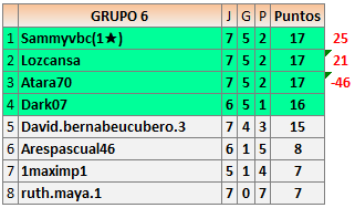 Deja un comentarioEn está página se irán publicando los resultados de las diferentes partidas, siendo ambos jugadores responsables de subirlos o de comprobar que ya hayan sido publicados insertando un COMENTARIO en la parte inferior de la pantalla (opción “Deja tu comentario”), indicando el nombre de los dos jugadores y los puntos obtenidos en la partida.
