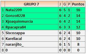 Deja un comentarioEn está página se irán publicando los resultados de las diferentes partidas, siendo ambos jugadores responsables de subirlos o de comprobar que ya hayan sido publicados insertando un COMENTARIO en la parte inferior de la pantalla (opción “Deja tu comentario”), indicando el nombre de los dos jugadores y los puntos obtenidos en la partida.