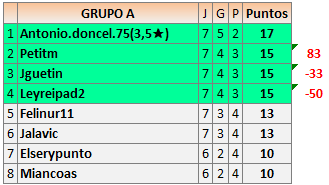Deja un comentarioEn está página se irán publicando los resultados de las diferentes partidas, siendo ambos jugadores responsables de subirlos o de comprobar que ya hayan sido publicados insertando un COMENTARIO en la parte inferior de la pantalla (opción “Deja tu comentario”), indicando el nombre de los dos jugadores y los puntos obtenidos en la partida.