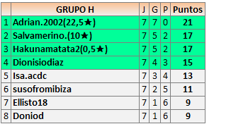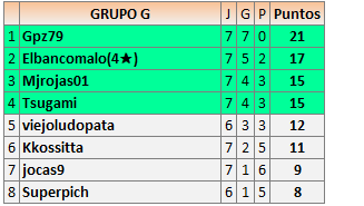 Deja un comentarioEn está página se irán publicando los resultados de las diferentes partidas, siendo ambos jugadores responsables de subirlos o de comprobar que ya hayan sido publicados insertando un COMENTARIO en la parte inferior de la pantalla (opción “Deja tu comentario”), indicando el nombre de los dos jugadores y los puntos obtenidos en la partida.