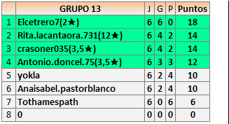 Deja un comentarioEn está página se irán publicando los resultados de las diferentes partidas, siendo ambos jugadores responsables de subirlos o de comprobar que ya hayan sido publicados insertando un COMENTARIO en la parte inferior de la pantalla (opción “Deja tu comentario”), indicando el nombre de los dos jugadores y los puntos obtenidos en la partida.