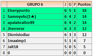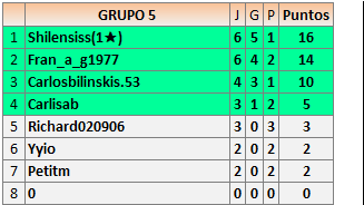 Deja un comentarioEn está página se irán publicando los resultados de las diferentes partidas, siendo ambos jugadores responsables de subirlos o de comprobar que ya hayan sido publicados insertando un COMENTARIO en la parte inferior de la pantalla (opción “Deja tu comentario”), indicando el nombre de los dos jugadores y los puntos obtenidos en la partida.
