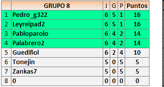 Deja un comentarioEn está página se irán publicando los resultados de las diferentes partidas, siendo ambos jugadores responsables de subirlos o de comprobar que ya hayan sido publicados insertando un COMENTARIO en la parte inferior de la pantalla (opción “Deja tu comentario”), indicando el nombre de los dos jugadores y los puntos obtenidos en la partida.