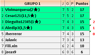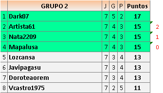 Deja un comentarioEn está página se irán publicando los resultados de las diferentes partidas, siendo ambos jugadores responsables de subirlos o de comprobar que ya hayan sido publicados insertando un COMENTARIO en la parte inferior de la pantalla (opción “Deja tu comentario”), indicando el nombre de los dos jugadores y los puntos obtenidos en la partida.