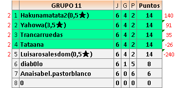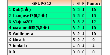 Deja un comentarioEn está página se irán publicando los resultados de las diferentes partidas, siendo ambos jugadores responsables de subirlos o de comprobar que ya hayan sido publicados insertando un COMENTARIO en la parte inferior de la pantalla (opción “Deja tu comentario”), indicando el nombre de los dos jugadores y los puntos obtenidos en la partida.