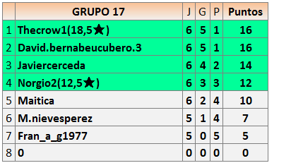 En está página se irán publicando los resultados de las diferentes partidas, siendo ambos jugadores responsables de subirlos o de comprobar que ya hayan sido publicados insertando un COMENTARIO en la parte inferior de la pantalla (opción “Deja tu comentario”), indicando el nombre de los dos jugadores y los puntos obtenidos en la partida.