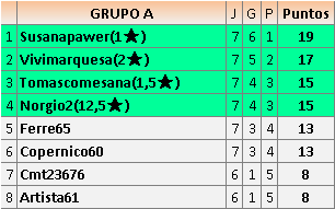 Deja un comentarioEn está página se irán publicando los resultados de las diferentes partidas, siendo ambos jugadores responsables de subirlos o de comprobar que ya hayan sido publicados insertando un COMENTARIO en la parte inferior de la pantalla (opción “Deja tu comentario”), indicando el nombre de los dos jugadores y los puntos obtenidos en la partida.