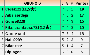 2En está página se irán publicando los resultados de las diferentes partidas, siendo ambos jugadores responsables de subirlos o de comprobar que ya hayan sido publicados insertando un COMENTARIO en la parte inferior de la pantalla (opción “Deja tu comentario”), indicando el nombre de los dos jugadores y los puntos obtenidos en la partida.