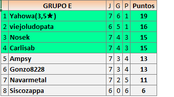 Deja un comentarioEn está página se irán publicando los resultados de las diferentes partidas, siendo ambos jugadores responsables de subirlos o de comprobar que ya hayan sido publicados insertando un COMENTARIO en la parte inferior de la pantalla (opción “Deja tu comentario”), indicando el nombre de los dos jugadores y los puntos obtenidos en la partida.