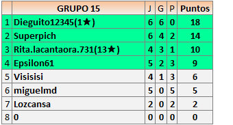 2En está página se irán publicando los resultados de las diferentes partidas, siendo ambos jugadores responsables de subirlos o de comprobar que ya hayan sido publicados insertando un COMENTARIO en la parte inferior de la pantalla (opción “Deja tu comentario”), indicando el nombre de los dos jugadores y los puntos obtenidos en la partida.