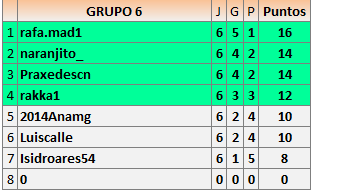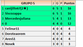 Deja un comentarioEn está página se irán publicando los resultados de las diferentes partidas, siendo ambos jugadores responsables de subirlos o de comprobar que ya hayan sido publicados insertando un COMENTARIO en la parte inferior de la pantalla (opción “Deja tu comentario”), indicando el nombre de los dos jugadores y los puntos obtenidos en la partida.