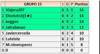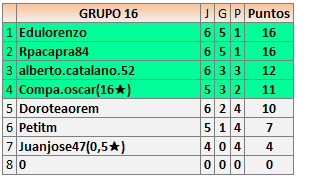Deja un comentarioEn está página se irán publicando los resultados de las diferentes partidas, siendo ambos jugadores responsables de subirlos o de comprobar que ya hayan sido publicados insertando un COMENTARIO en la parte inferior de la pantalla (opción “Deja tu comentario”), indicando el nombre de los dos jugadores y los puntos obtenidos en la partida.