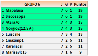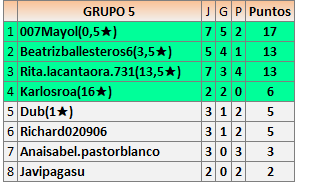 Deja un comentarioEn está página se irán publicando los resultados de las diferentes partidas, siendo ambos jugadores responsables de subirlos o de comprobar que ya hayan sido publicados insertando un COMENTARIO en la parte inferior de la pantalla (opción “Deja tu comentario”), indicando el nombre de los dos jugadores y los puntos obtenidos en la partida.