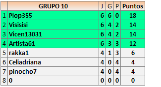 Deja un comentarioEn está página se irán publicando los resultados de las diferentes partidas, siendo ambos jugadores responsables de subirlos o de comprobar que ya hayan sido publicados insertando un COMENTARIO en la parte inferior de la pantalla (opción “Deja tu comentario”), indicando el nombre de los dos jugadores y los puntos obtenidos en la partida.