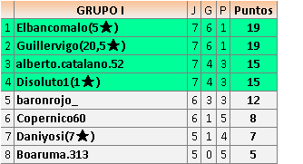 Deja un comentarioEn está página se irán publicando los resultados de las diferentes partidas, siendo ambos jugadores responsables de subirlos o de comprobar que ya hayan sido publicados insertando un COMENTARIO en la parte inferior de la pantalla (opción “Deja tu comentario”), indicando el nombre de los dos jugadores y los puntos obtenidos en la partida.