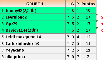 Deja un comentarioEn está página se irán publicando los resultados de las diferentes partidas, siendo ambos jugadores responsables de subirlos o de comprobar que ya hayan sido publicados insertando un COMENTARIO en la parte inferior de la pantalla (opción “Deja tu comentario”), indicando el nombre de los dos jugadores y los puntos obtenidos en la partida.
