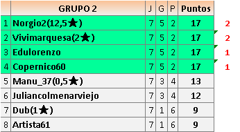 Deja un comentarioEn está página se irán publicando los resultados de las diferentes partidas, siendo ambos jugadores responsables de subirlos o de comprobar que ya hayan sido publicados insertando un COMENTARIO en la parte inferior de la pantalla (opción “Deja tu comentario”), indicando el nombre de los dos jugadores y los puntos obtenidos en la partida.