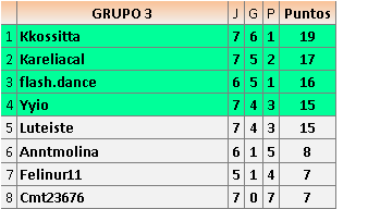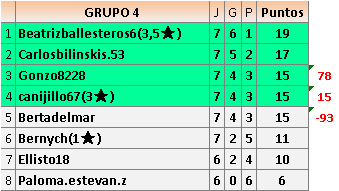 Deja un comentarioEn está página se irán publicando los resultados de las diferentes partidas, siendo ambos jugadores responsables de subirlos o de comprobar que ya hayan sido publicados insertando un COMENTARIO en la parte inferior de la pantalla (opción “Deja tu comentario”), indicando el nombre de los dos jugadores y los puntos obtenidos en la partida.