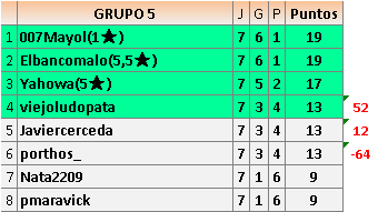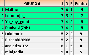 Deja un comentarioEn está página se irán publicando los resultados de las diferentes partidas, siendo ambos jugadores responsables de subirlos o de comprobar que ya hayan sido publicados insertando un COMENTARIO en la parte inferior de la pantalla (opción “Deja tu comentario”), indicando el nombre de los dos jugadores y los puntos obtenidos en la partida.