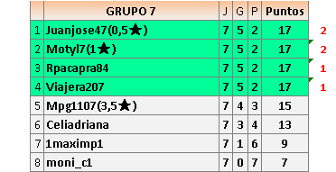 En está página se irán publicando los resultados de las diferentes partidas, siendo ambos jugadores responsables de subirlos o de comprobar que ya hayan sido publicados insertando un COMENTARIO en la parte inferior de la pantalla (opción “Deja tu comentario”), indicando el nombre de los dos jugadores y los puntos obtenidos en la partida.