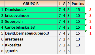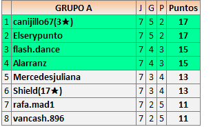 Deja un comentarioEn está página se irán publicando los resultados de las diferentes partidas, siendo ambos jugadores responsables de subirlos o de comprobar que ya hayan sido publicados insertando un COMENTARIO en la parte inferior de la pantalla (opción “Deja tu comentario”), indicando el nombre de los dos jugadores y los puntos obtenidos en la partida.
