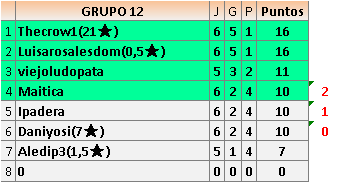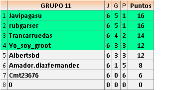 Deja un comentarioEn está página se irán publicando los resultados de las diferentes partidas, siendo ambos jugadores responsables de subirlos o de comprobar que ya hayan sido publicados insertando un COMENTARIO en la parte inferior de la pantalla (opción “Deja tu comentario”), indicando el nombre de los dos jugadores y los puntos obtenidos en la partida.