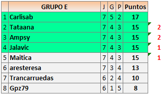 Deja un comentarioEn está página se irán publicando los resultados de las diferentes partidas, siendo ambos jugadores responsables de subirlos o de comprobar que ya hayan sido publicados insertando un COMENTARIO en la parte inferior de la pantalla (opción “Deja tu comentario”), indicando el nombre de los dos jugadores y los puntos obtenidos en la partida.