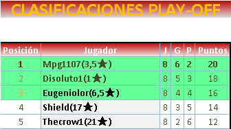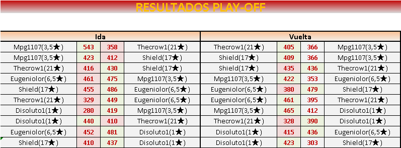 Hola, comentaros que la partida de vuelta contra Disoluto el resultado es Eugeniolor (436) Disoluto (415)