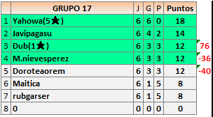 Deja un comentarioEn está página se irán publicando los resultados de las diferentes partidas, siendo ambos jugadores responsables de subirlos o de comprobar que ya hayan sido publicados insertando un COMENTARIO en la parte inferior de la pantalla (opción “Deja tu comentario”), indicando el nombre de los dos jugadores y los puntos obtenidos en la partida.