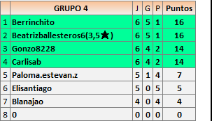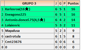 Deja un comentarioEn está página se irán publicando los resultados de las diferentes partidas, siendo ambos jugadores responsables de subirlos o de comprobar que ya hayan sido publicados insertando un COMENTARIO en la parte inferior de la pantalla (opción “Deja tu comentario”), indicando el nombre de los dos jugadores y los puntos obtenidos en la partida.