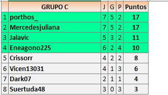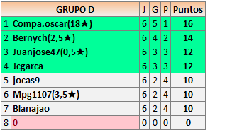 En está página se irán publicando los resultados de las diferentes partidas, siendo ambos jugadores responsables de subirlos o de comprobar que ya hayan sido publicados insertando un COMENTARIO en la parte inferior de la pantalla (opción “Deja tu comentario”), indicando el nombre de los dos jugadores y los puntos obtenidos en la partida.