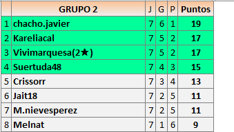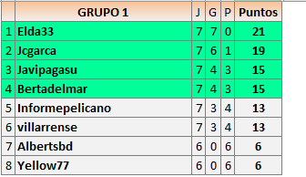 Deja un comentarioEn está página se irán publicando los resultados de las diferentes partidas, siendo ambos jugadores responsables de subirlos o de comprobar que ya hayan sido publicados insertando un COMENTARIO en la parte inferior de la pantalla (opción “Deja tu comentario”), indicando el nombre de los dos jugadores y los puntos obtenidos en la partida.
