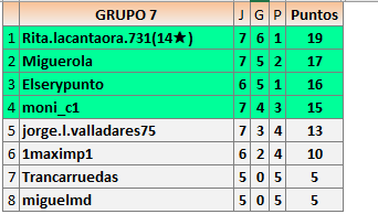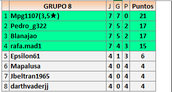 Deja un comentarioEn está página se irán publicando los resultados de las diferentes partidas, siendo ambos jugadores responsables de subirlos o de comprobar que ya hayan sido publicados insertando un COMENTARIO en la parte inferior de la pantalla (opción “Deja tu comentario”), indicando el nombre de los dos jugadores y los puntos obtenidos en la partida.