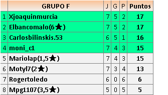 Deja un comentarioEn está página se irán publicando los resultados de las diferentes partidas, siendo ambos jugadores responsables de subirlos o de comprobar que ya hayan sido publicados insertando un COMENTARIO en la parte inferior de la pantalla (opción “Deja tu comentario”), indicando el nombre de los dos jugadores y los puntos obtenidos en la partida.