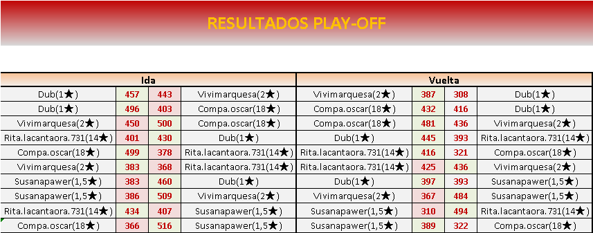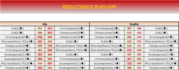 Fin PLAY OFF VUELTA: 10 de ABRIL a las 21:00