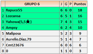 Deja un comentarioEn está página se irán publicando los resultados de las diferentes partidas, siendo ambos jugadores responsables de subirlos o de comprobar que ya hayan sido publicados insertando un COMENTARIO en la parte inferior de la pantalla (opción “Deja tu comentario”), indicando el nombre de los dos jugadores y los puntos obtenidos en la partida.