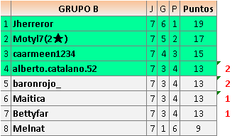 Deja un comentarioEn está página se irán publicando los resultados de las diferentes partidas, siendo ambos jugadores responsables de subirlos o de comprobar que ya hayan sido publicados insertando un COMENTARIO en la parte inferior de la pantalla (opción “Deja tu comentario”), indicando el nombre de los dos jugadores y los puntos obtenidos en la partida.