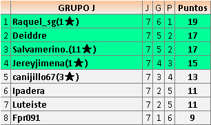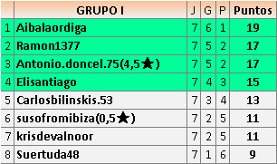 Deja un comentarioEn está página se irán publicando los resultados de las diferentes partidas, siendo ambos jugadores responsables de subirlos o de comprobar que ya hayan sido publicados insertando un COMENTARIO en la parte inferior de la pantalla (opción “Deja tu comentario”), indicando el nombre de los dos jugadores y los puntos obtenidos en la partida.