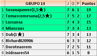 10En está página se irán publicando los resultados de las diferentes partidas, siendo ambos jugadores responsables de subirlos o de comprobar que ya hayan sido publicados insertando un COMENTARIO en la parte inferior de la pantalla (opción “Deja tu comentario”), indicando el nombre de los dos jugadores y los puntos obtenidos en la partida.