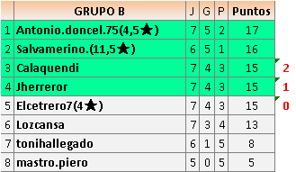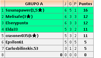 Deja un comentarioEn está página se irán publicando los resultados de las diferentes partidas, siendo ambos jugadores responsables de subirlos o de comprobar que ya hayan sido publicados insertando un COMENTARIO en la parte inferior de la pantalla (opción “Deja tu comentario”), indicando el nombre de los dos jugadores y los puntos obtenidos en la partida.